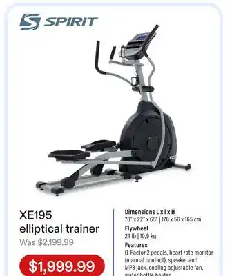 This XE195 elliptical trainer is now on sale at Club Piscine. Check the current selection filled with great deals and discounts. Purchase XE195 elliptical trainer online via Club Piscine website or get it at the best available price in person. Flyerdeals.ca gathers the best XE195 elliptical trainer promotions for you. Click on the bell icon to receive a free notification when this product is on sale again.XE195 elliptical trainer promotions for next week