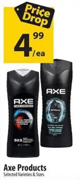 This promotion is available in various stores, view all products to get the cheapest Axe Products. If you'd like to find out whether this product has a bigger discount in another store, check the category 'Grocery'. You may also find these offers interesting: AXE Selected body care products, AXE Produits sélectionnés / Selected products & 36 in. Axe.