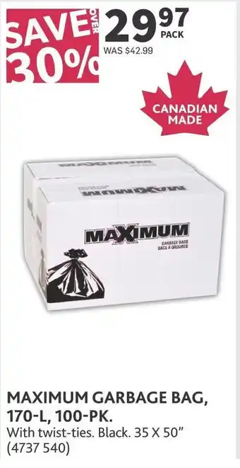 Maximum garbage bag, 170-l, 100-pk discount at Co-op