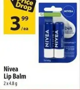 This Nivea Lip Balm is now on sale at Co-op. Check the current selection filled with great deals and discounts. Purchase Nivea Lip Balm online via Co-op website or get it at the best available price in person. Flyerdeals.ca gathers the best Nivea Lip Balm promotions for you. Click on the bell icon to receive a free notification when this product is on sale again.Nivea Lip Balm promotions for next week