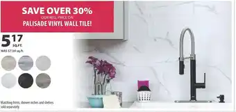 Co-op offers a wide collection of products, besides the Palisade vinyl wall tile. Keep an eye on the weekly Co-op flyer to find the best offers and promotions. Besides Palisade vinyl wall tile, you can also find the following offers: Rapolano marfil wall tile, Square Shower Set with Tile Wall Design, 36 in, Black & 100 pk 1/16 in. Tile Spacers.