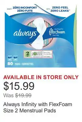 Always Infinity with FlexFoam Size 2 Menstrual Pads promotion at Costco