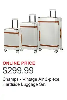This Champs - Vintage Air 3-piece Hardside Luggage Set is currently on sale at Costco. All details regarding the current price, offer conditions, and validity period can be found on this page. You can also explore other similar deals and promotions related to Champs - Vintage Air 3-piece Hardside Luggage Set to make the most cost-effective choice.