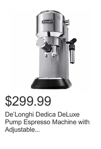 | De'longhi dedica deluxe pump espresso machine with adjustable frothing wand | Costco | $299.99 | 17 July 2023 | 24 July 2023 | |||