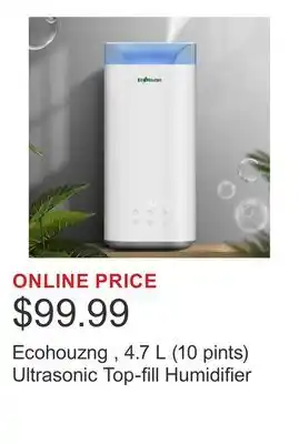 The price of Ecohouzng , 4.7 L (10 pints) Ultrasonic Top-fill Humidifier can be found at the top of the page, together with the dates during which the offer is available. You can also check the price in the current Costco flyer or on the Costco website. Promotional offers assure you of buying Costco products at the lowest price.