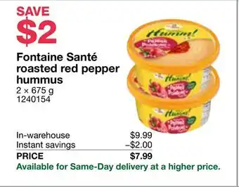 Fontaine Santé roasted red pepper hummus promotion at Costco