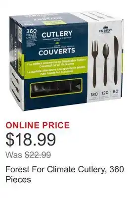 This Forest For Climate Cutlery, 360 Pieces is now on sale at Costco. Check the current selection filled with great deals and discounts. Purchase Forest For Climate Cutlery, 360 Pieces online via Costco website or get it at the best available price in person. Flyerdeals.ca gathers the best Forest For Climate Cutlery, 360 Pieces promotions for you. Click on the bell icon to receive a free notification when this product is on sale again.Forest For Climate Cutlery, 360 Pieces promotions for next week