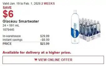The price of Glacéau Smartwater can be found at the top of the page, together with the dates during which the offer is available. You can also check the price in the current Costco flyer or on the Costco website. Promotional offers assure you of buying Costco products at the lowest price.