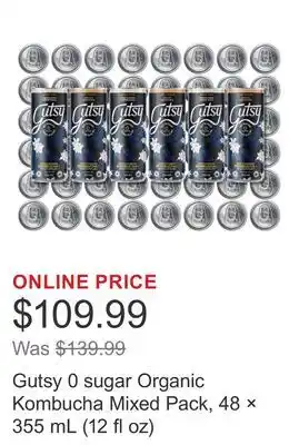 Gutsy 0 sugar Organic Kombucha Mixed Pack, 48 × 355 mL (12 fl oz) promotion at Costco