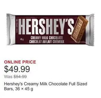 Hershey's Creamy Milk Chocolate Full Sized Bars, 36 × promotion at Costco
