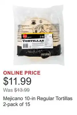 Mejicano 10-in Regular Tortillas 2-pack of 15 promotion at Costco