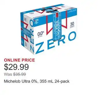 Now on sale at Costco: Michelob Ultra 0%, 355 mL 24-pack ✅ Valid from 5-01 to 11-01.