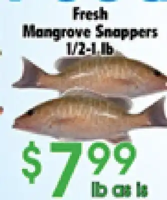 This promotion is available in various stores, view all products to get the cheapest Fresh Mangrove Snappers. If you'd like to find out whether this product has a bigger discount in another store, check the category 'Grocery'. You may also find these offers interesting: Fresh Yellow Tail Snappers, LIL SNAPPERS Gala, Pink Lady or Granny Smith Apples & Fresh Garlic.