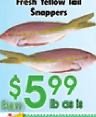 The Fresh Yellow tail Snappers is available this week at Danforth Food Market with a valuable discount. On this page, you will find details about the current promotional price, the promotion terms, and any special discounts. You can also explore other related deals and promotions for Fresh Yellow tail Snappers to make sure you get the best value.