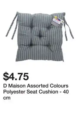 D Maison Assorted Colours Polyester Seat Cushion - 40 cm offer at Dollarama