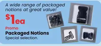 This promotion is available in various stores, view all products to get the cheapest Packaged Notions. If you'd like to find out whether this product has a bigger discount in another store, check the category 'Clothing and shoes'. You may also find these offers interesting: GoodLeaf Fresh Packaged Salads, Soft Loft Batting Packaged Grab-N-Go & offer 3.