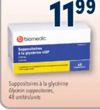 Now on sale at Familiprix: BIOMEDIC Glycerin suppositories, 48 units ✅ Valid from 8-01 to 14-01.