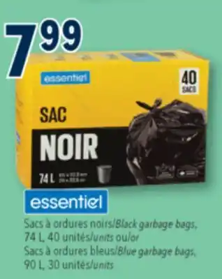 ESSENTIEL, Black garbage bags, 74 L, units or Blue garbage bags, 90 L, 30 units promotion at Familiprix