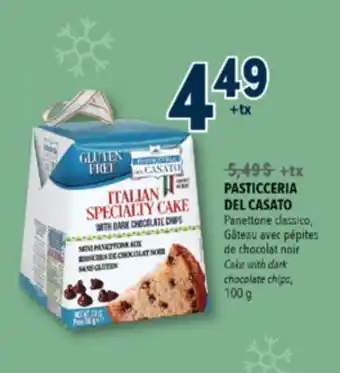Now on sale at Familiprix: PASTICCERIA DEL CASATO, Cake with dark chocolate chips, 100 g ✅ Valid from 18-12 to 24-12.