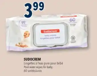 The price of SUDOCREM, Pure water wipes for baby, 60 units can be found at the top of the page, together with the dates during which the offer is available. You can also check the price in the current Familiprix flyer or on the Familiprix website. Promotional offers assure you of buying Familiprix products at the lowest price.
