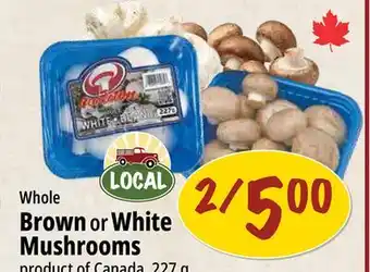 This promotion is available in various stores, view all products to get the cheapest Whole Brown or White Mushrooms. If you'd like to find out whether this product has a bigger discount in another store, check the category 'Grocery'. You may also find these offers interesting: Compliments Whole White or Brown Mushrooms 227 g Product of Ontario, WHOLE WHITE OR CREMINI MUSHROOMS & WHOLE WHITE OR CREMINI MUSHROOMS.