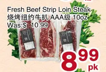 This promotion is available in various stores, view all products to get the cheapest Fresh Beef Strip Loin Steak. If you'd like to find out whether this product has a bigger discount in another store, check the category 'Grocery'. You may also find these offers interesting: BONELESS STRIP LOIN STEAK, STERLING SILVER STRIP LOIN STEAK & Fresh Beef Striploin (Steak).
