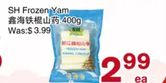 This promotion is available in various stores, view all products to get the cheapest SH Frozen Yam. If you'd like to find out whether this product has a bigger discount in another store, check the category 'Grocery'. You may also find these offers interesting: SH) FROZEN SEA SQUIRT, SH Frozen Banana Leaf & Commercial Yam.