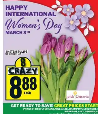 Many people prepare their shopping list in advance, using the latest deals and promotions. Flyerdeals.ca is among the first to share next week’s promotions, so you know whether to wait before making a purchase or buy right away at the best price. Our team updates all 10 STEM TULIPS promotions quickly, allowing you to plan with both this week’s and next week’s offers. Some promotions are only available during specific dates or online.Frequently asked questions about 10 STEM TULIPS