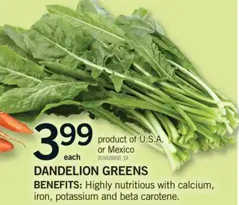 The price of DANDELION GREENS can be found at the top of the page, together with the dates during which the offer is available. You can also check the price in the current Fortinos flyer or on the Fortinos website. Promotional offers assure you of buying Fortinos products at the lowest price.