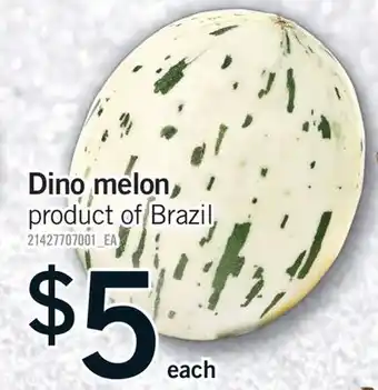 This DINO MELON, EACH is now on sale at Fortinos. Check the current selection filled with great deals and discounts. Purchase DINO MELON, EACH online via Fortinos website or get it at the best available price in person. Flyerdeals.ca gathers the best DINO MELON, EACH promotions for you. Click on the bell icon to receive a free notification when this product is on sale again.DINO MELON, EACH promotions for next week