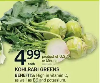 This KOHLRABI GREENS is now on sale at Fortinos. Check the current selection filled with great deals and discounts. Purchase KOHLRABI GREENS online via Fortinos website or get it at the best available price in person. Flyerdeals.ca gathers the best KOHLRABI GREENS promotions for you. Click on the bell icon to receive a free notification when this product is on sale again.KOHLRABI GREENS promotions for next week