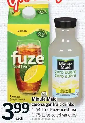 MINUTE MAID ZERO SUGAR FRUIT DRINKS 1.54 L OR FUZE ICED TEA 1.75 L promotion at Fortinos