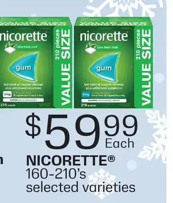 The price of NICORETTE , 160-210' S can be found at the top of the page, together with the dates during which the offer is available. You can also check the price in the current Fortinos flyer or on the Fortinos website. Promotional offers assure you of buying Fortinos products at the lowest price.