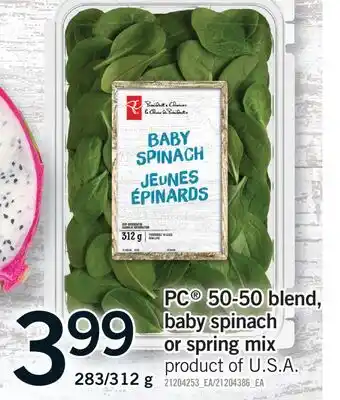 PC 50-50 blend, baby spinach or spring mix, 283/312 g promotion at Fortinos