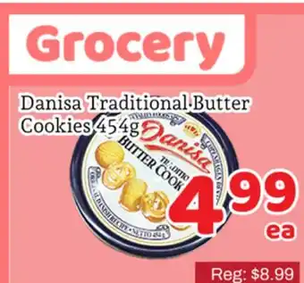 This Danisa Traditional Butter Cookies is now on sale at Fresh Value. Check the current selection filled with great deals and discounts. Purchase Danisa Traditional Butter Cookies online via Fresh Value website or get it at the best available price in person. Flyerdeals.ca gathers the best Danisa Traditional Butter Cookies promotions for you. Click on the bell icon to receive a free notification when this product is on sale again.Danisa Traditional Butter Cookies promotions for next week