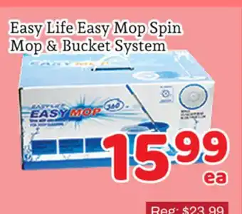 This Easy Life Easy Mop Spin Mop & Bucket System is now on sale at Fresh Value. Check the current selection filled with great deals and discounts. Purchase Easy Life Easy Mop Spin Mop & Bucket System online via Fresh Value website or get it at the best available price in person. Flyerdeals.ca gathers the best Easy Life Easy Mop Spin Mop & Bucket System promotions for you. Click on the bell icon to receive a free notification when this product is on sale again.Easy Life Easy Mop Spin Mop & Bucket System promotions for next week