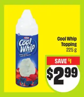 This promotion is available in various stores, view all products to get the cheapest Cool Whip Topping 225 g. If you'd like to find out whether this product has a bigger discount in another store, check the category 'Grocery'. You may also find these offers interesting: Cool Whip Topping 225 g, TENDERFLAKE PASTRY, 255-397 G OR COOL WHIP DESSERT TOPPING, 1 L & COOL WHIP Whipped Topping.