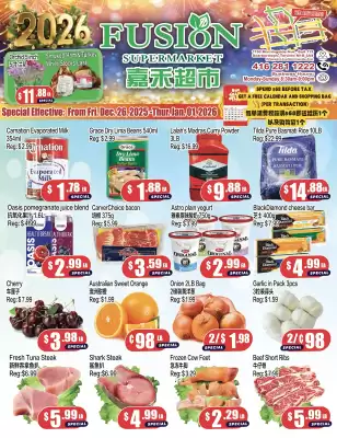 You can find this week’s latest Fusion Supermarket Flyer at the top of this page. This Fusion Supermarket flyer, valid from 26-12-2025 to 01-01-2026, shows the complete overview of the current promotional flyers from Fusion Supermarket. Here you can see how many pages the flyer contains and how long it will remain valid. The information has been verified by Fusion Supermarket and applies to stores in Brampton, Calgary and Edmonton.