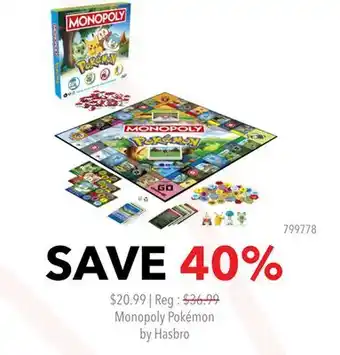 The price of Monopoly Pokémon by Hasbro can be found at the top of the page, together with the dates during which the offer is available. You can also check the price in the current GameStop flyer or on the GameStop website. Promotional offers assure you of buying GameStop products at the lowest price.