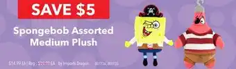 Spongebob Assorted Medium Plush offer at GameStop