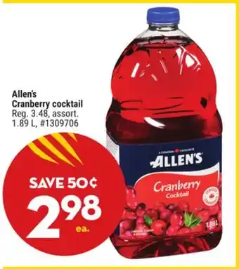 Now on sale at Giant Tiger: Allen's Cranberry cocktail ✅ Valid from 4-03 to 10-03.