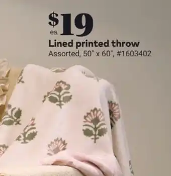 Giant Tiger Lined printed throw offer