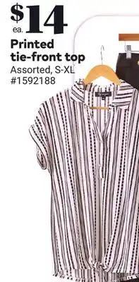 Printed tie-front top offers and online promotions