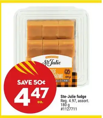 This promotion is available in various stores, view all products to get the cheapest Ste-Julie fudge. If you'd like to find out whether this product has a bigger discount in another store, check the category 'Department Stores'. You may also find these offers interesting: TRIO SUCRE À LA CRÈME ET FUDGE | SUGAR CREAM AND FUDGE TRIO, LAURA SECORD Butter and cream or chocolate fudge & Mrs Tilly's Fabulous Festive Fudge 300 g.