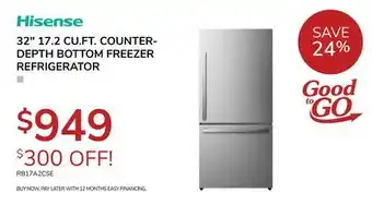 HISENSE 32 17.2 CU. FT. COUNTER-DEPTH BOTTOM FREEZER REFRIGERATOR offer at Goemans Appliances