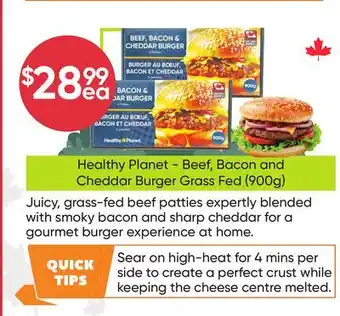 This Healthy Planet-Beef, Bacon and Cheddar Burger promotion is valid in week 08. If it has expired, you can still view other available offers. Following the product category will keep you updated whenever Healthy Planet-Beef, Bacon and Cheddar Burger is on sale again at Healthy Planet as part of a new promotion or discount.