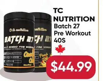 The TC NUTRITION Batch 27 Pre Workout is available this week at Healthy Planet with a valuable discount. On this page, you will find details about the current promotional price, the promotion terms, and any special discounts. You can also explore other related deals and promotions for TC NUTRITION Batch 27 Pre Workout to make sure you get the best value.