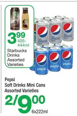 This promotion is available in various stores, view all products to get the cheapest Pepsi Soft Drinks Mini Cans. If you'd like to find out whether this product has a bigger discount in another store, check the category 'Grocery'. You may also find these offers interesting: PEPSI SOFT DRINKS, PEPSI SOFT DRINKS & PEPSI SOFT DRINKS.