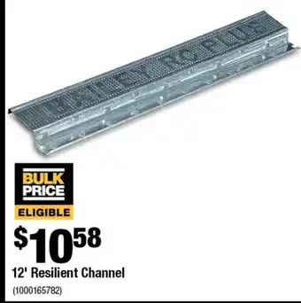 The price of 12' resilient channel can be found at the top of the page, together with the dates during which the offer is available. You can also check the price in the current Home Depot flyer or on the Home Depot website. Promotional offers assure you of buying Home Depot products at the lowest price.