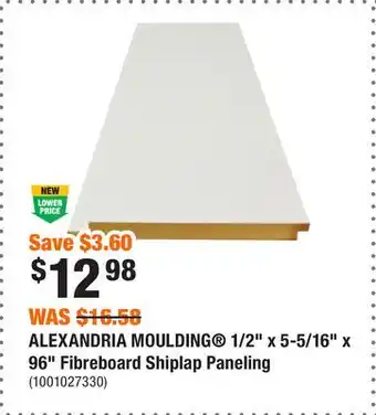 Now on sale at Home Depot: ALEXANDRIA MOULDING 1/2 x 5-5/16 x 96 Fibreboard Shiplap Paneling ✅ Valid from 1-01 to 14-01.